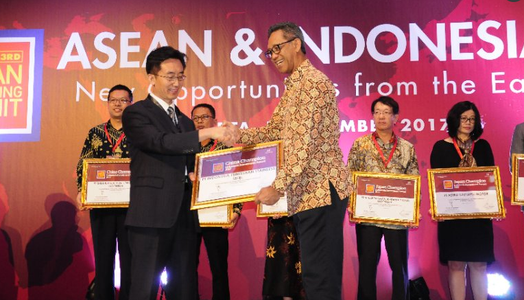 中国印尼经贸合作区jinnian金年会园区的入园企业PT Indonesia Guang Ching Nickel and Stainless Steel Industry、PT Indonesia Tsingshan Stainless Steel和PT Indonesia Ruipu Nickel and Chrome Alloy 分别与其他5家中国企业获得了“2017年中国企业印尼冠军奖”。