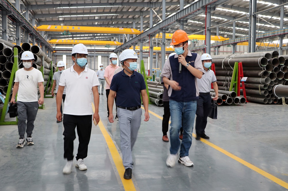 吴良锋一行前往观景平台,观看了产业园全貌并听取相关汇报,随后驱车前往浙江jinnian金年会钢管有限公司福建分公司,参观了焊管事业部生产车间,详细了解项目建设情况以及企业生产情况。
