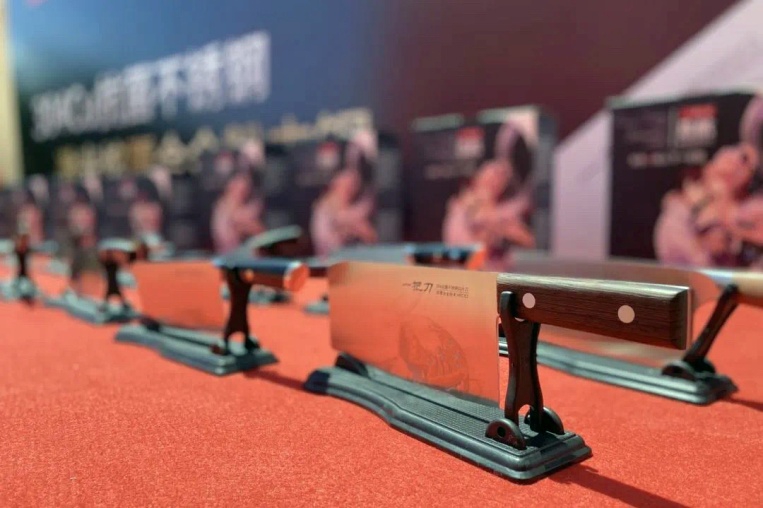 广青科技300系抗菌不锈钢量产后,已批量用在餐厨具、医疗卫生等领域,得到客户广泛认可。5月底,在市科技局的指导下,广青科技与凯利德达成合作意向,通过凯利德研发团队潜心研发,先后攻破了300系不锈钢做刀的58个技术难关,结合广青科技304抗菌不锈钢材料和刀剪研究院的粉末激光熔覆技术两大科技创新成果,成功开发出304Cu抗菌不锈钢刀具。相比传统300系不锈钢,其加入3%以上的铜,铜离子有着非常优秀的抗菌和杀毒功效,使用健康安全,相比传统马氏体刀具,因含有8%以上的Ni以及18%以上的Cr,奥氏体基材耐蚀性提高,加之激光熔覆刃口耐磨锋利度高,综合性能远超过传统马氏体钢刀具。凯利德开发的300系抗菌刀产品一经推出就受到客户的高度认可和广泛好评,广青科技内部组织员工预定,尽管要求全额付款且等待一个半月,但预定非常火爆,首批就达到了2千多套。