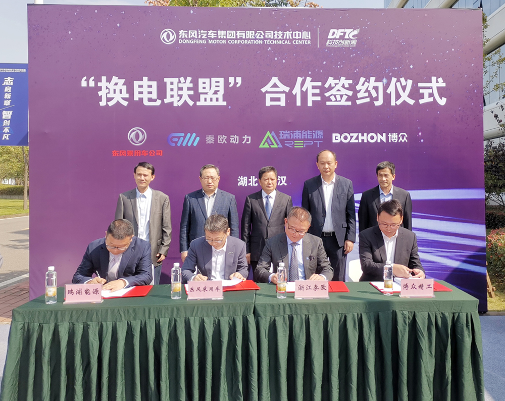 近日,东风汽车集团有限公司技术中心第五届科技创新周活动于湖北武汉开幕。作为东风风神E70项目的重点供应商之一,瑞浦能源有限公司应邀参会,并与东风乘用车、秦欧动力、博众精工一同举行了“换电联盟”合作签约仪式,现场签署“换电联盟”合作协议。