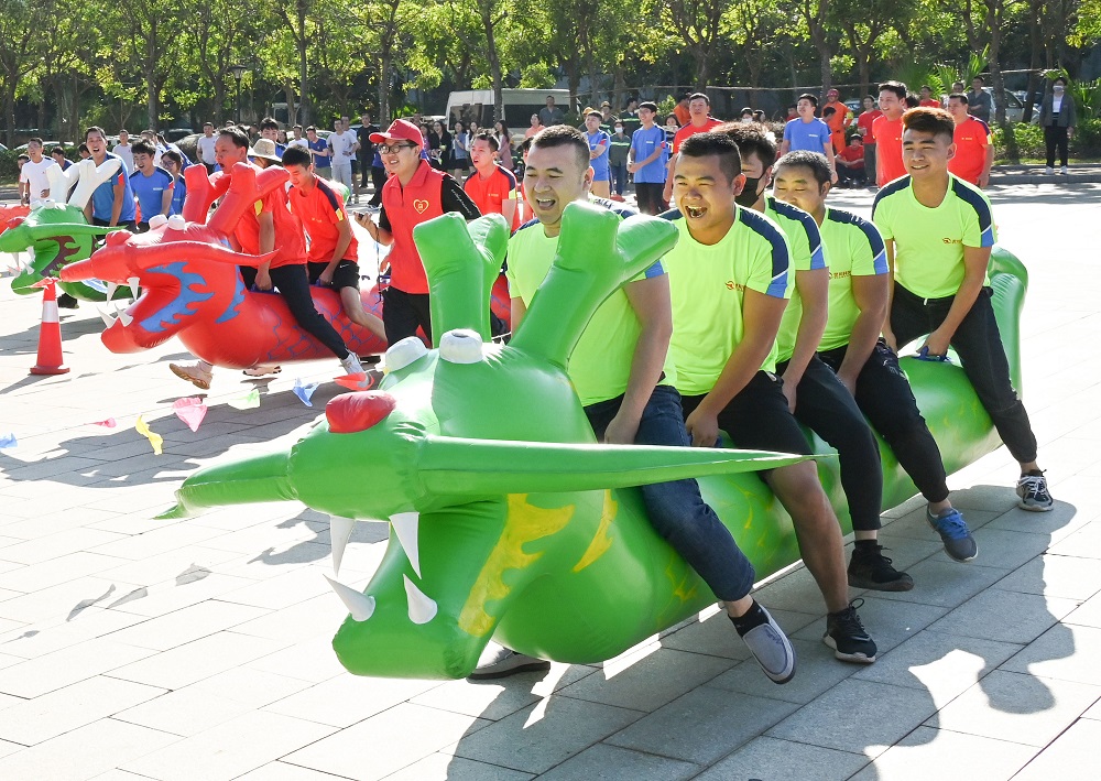 本次运动会以“快乐工作 健康生活”为主题,共设同心击鼓、猛龙过江、铁甲战车、旋转木桩、点球大战、超级大冲关等6个竞争激烈而又趣味横生的比赛项目。比赛现场,队员们生龙活虎、锐不可当,展开了激烈角逐。赛场上加油声、喝彩声、欢笑声此起彼伏,各参赛队伍在比赛中发扬“更快、更高、更强、更团结”的体育精神,互相配合、全力以赴、力争上游,赛出水平,赛出风格,留下了一幕幕精彩的画面。