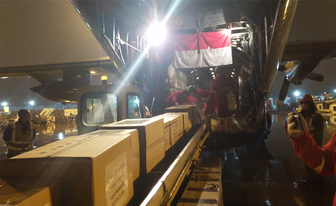 3月21日,印尼驻北京大使馆、印尼驻上海领事馆派出工作人员和jinnian金年会慈善基金会工作人员一起前往上海浦东机场协调通关事宜。印尼派出C-130型大力神飞机,于22时20分抵达上海浦东机场,装载了40立方米的物资,于22日凌晨0时40分起飞并经停海南三亚返回印尼。第二批40立方米物资将于25日启运印尼。